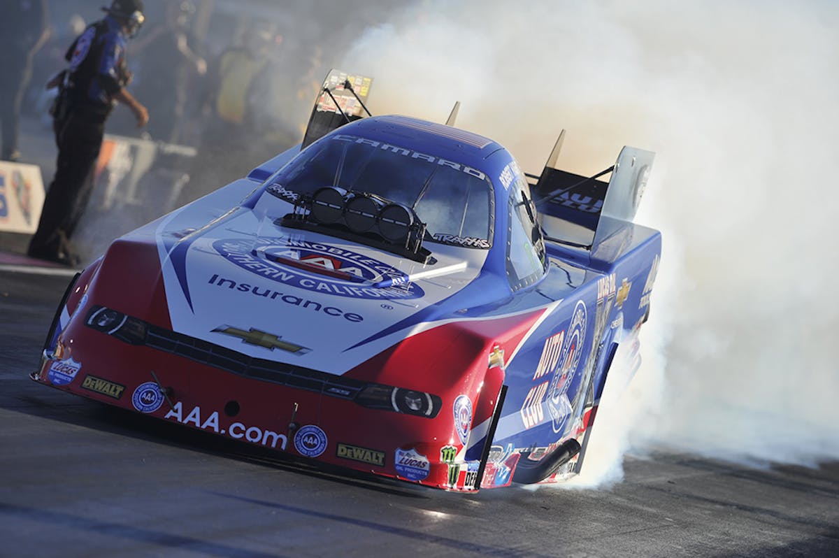 Johnson’s strong effort this weekend put him in the championship conversation in Funny Car, albeit 97 points back in third place behind leader Del Worsham and second place Jack Beckman. Worsham and Beckman lost in the second round and Worsham leads by 38 points heading to the season-finale at Pomona.