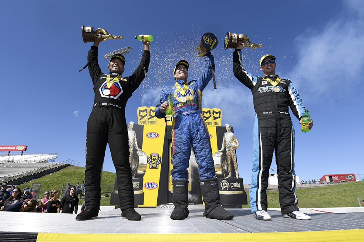 The final was a rematch from the event in Atlanta and marked the third consecutive final round appearance for Castellana. Jackson, who has built a sizable fan following after ample success in the eighth-mile radial tire world, had a better reaction time and was able to hold off Castellana for the win. Jackson posted a winning time of 5.794-seconds at 248.48 to the trailing time of 5.857 at 250.64.