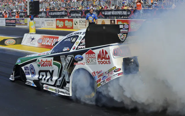 Force powered to his second win of the season with a final round performance of 4.097 seconds at 310.13 mph in his Castrol GTX Ford Mustang, while defending world champ Jack Beckman trailed in his Valvoline/MTS Dodge Charger with a 4.127 at 309.84.