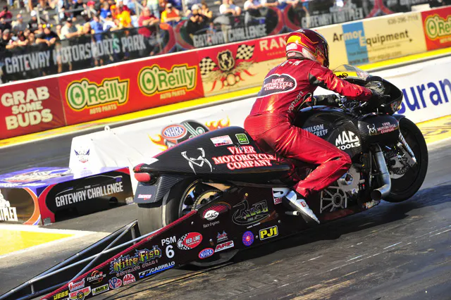 In Pro Stock Motorcycle, Smith rode to his second victory of the season and moved into the series lead by outrunning LE Tonglet in the final round. Smith scored his 15th win of his career and second at this track with a performance of 6.887 at 194.52 on his Viper Motorcycle Company Buell, while Tonglet trailed with a 6.950 at 192.14 on his Nitro Fish Suzuki.