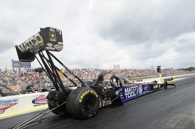 With the win, Brown moved to second place in the points order, within five points of series leader Tony Schumacher.