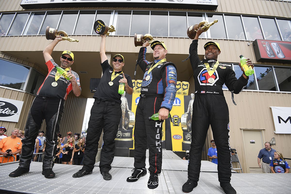 Antron Brown (Top Fuel), Drew Skillman (Pro Stock) and Eddie Krawiec (Pro Stock Motorcycle) were also victorious in their respective categories at the 14th of 24 events on the 2017 NHRA Mello Yello Drag Racing Series schedule.