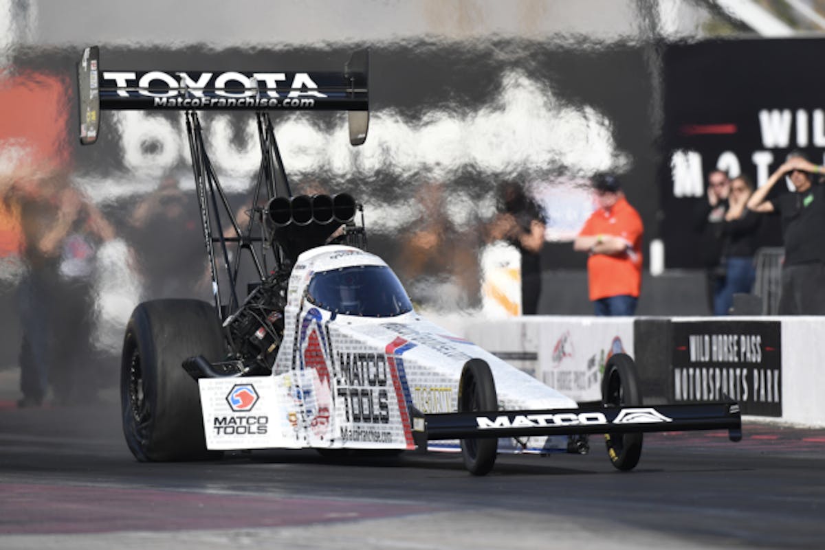 Three-time Top Fuel world champion Antron Brown led the pack at the NHRA Nitro Spring Training on Thursday at Wild Horse Pass Motorsports Park located outside of Phoenix. The 2018 NHRA Mello Yello Drag Racing Series begins at the Lucas Oil NHRA Winternationals presented by ProtectTheHarvest.com on Feb. 8-11 at Auto Club Raceway at Pomona and the test session is key for early season success.