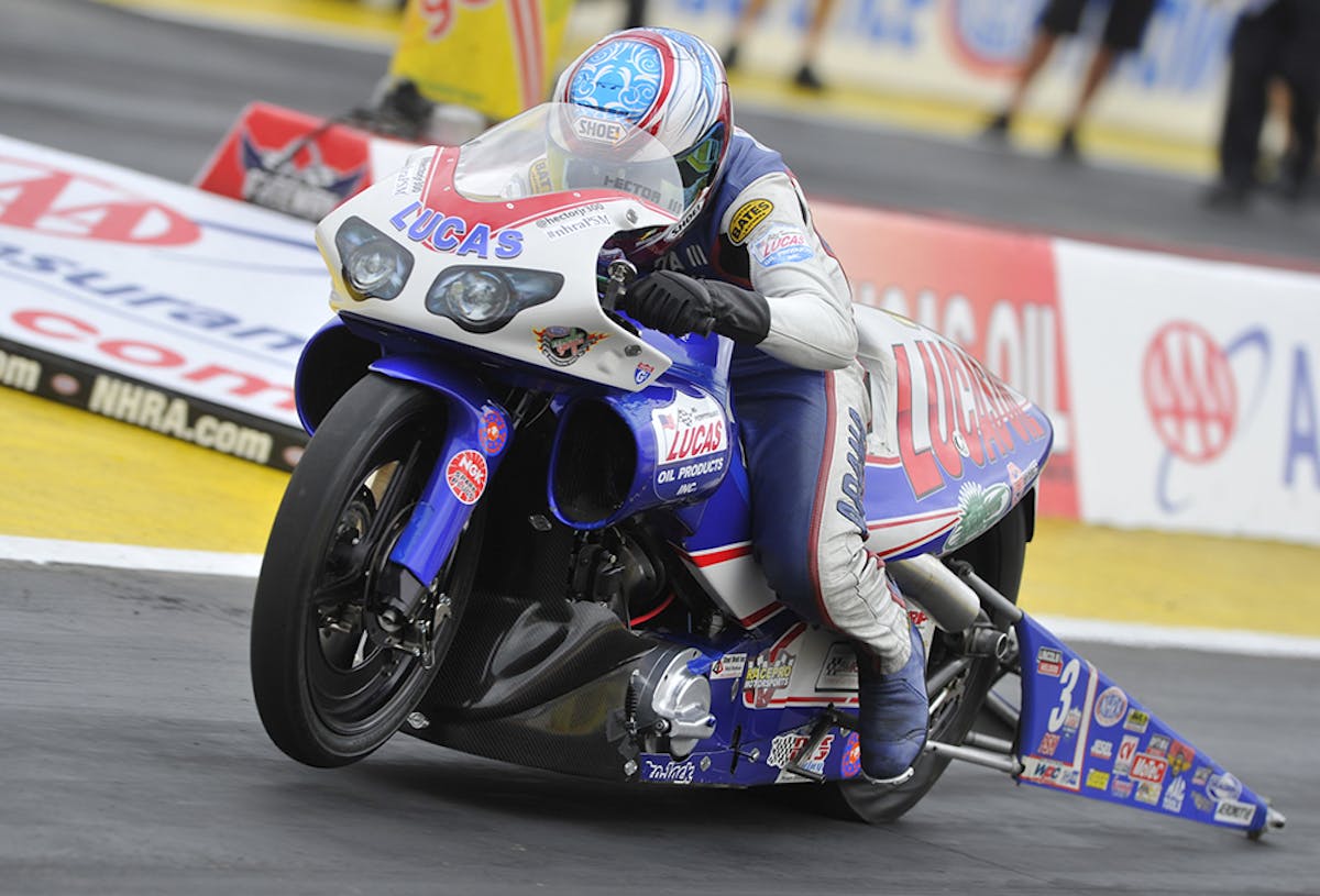 Arana Jr. raced to his second Pro Stock Motorcycle win of the season when he defeated his father Hector Arana in the finals. Arana Jr. raced his Lucas Oil Buell to a winning pass of 6.860 at 196.50 to his father’s trailing run of 6.932 at 195.03, also on a Lucas Oil Buell. This is the first career win in St. Louis for Arana Jr. The win moves him to 34 points behind Andrew Hines and caps a significant week for the racer.