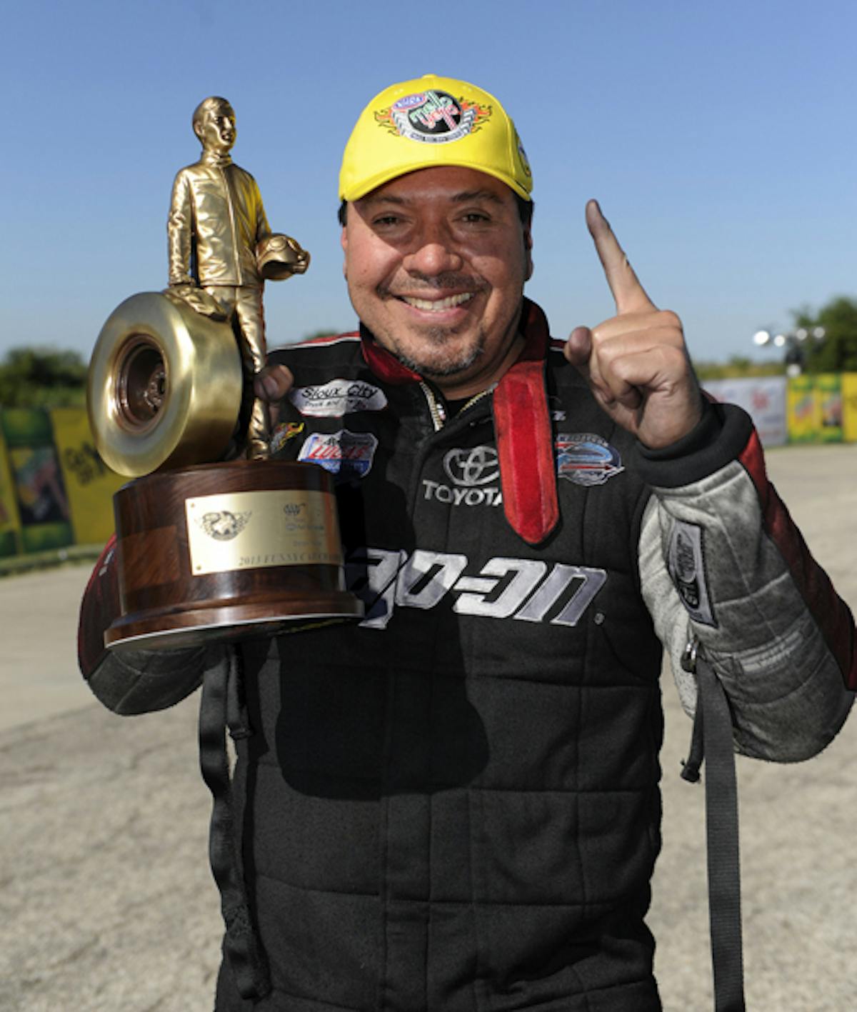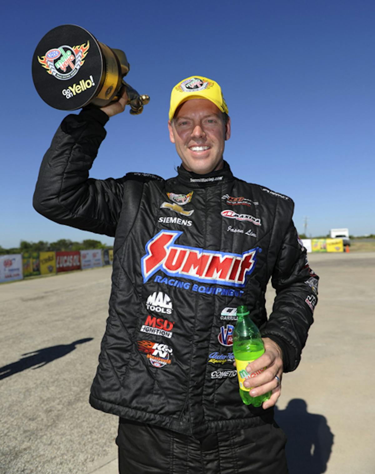 TEXANS TRIUMPH – Texans Donald Thomas (Competition Eliminator), Jerry Emmons (Stock), Scooter Choate (Super Comp), Jimmy Lewis (Super Gas), and Lee Lightfoot (Top Dragster) led the list of sportsman winners. Jim Whiteley took the Top Alcohol Dragster trophy from the No. 1 starting position, and Shane Westerfield was the Top Alcohol Funny Car winner. Anthony Bertozzi claimed the Wally in the Super Stock class.