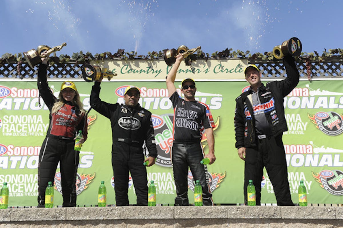 Khalid alBalooshi (Top Fuel), Jason Line (Pro Stock) and Eddie Krawiec (Pro Stock Motorcycle) also were winners at the NHRA Mello Yello Drag Racing Series event at Sonoma Raceway.