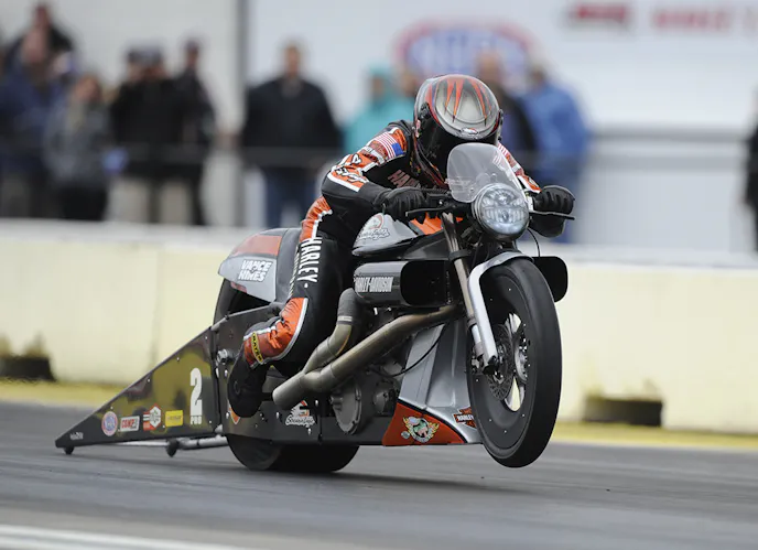 In Pro Stock Motorcycle, Krawiec took his third consecutive victory of the season by racing past teammate Andrew Hines in an all-Screamin’ Eagle Vance & Hines Harley-Davidson final round. Krawiec finished in 6.844 at 194.30 to take his 30th career victory and second at BIR, while Hines clocked a 6.894 at 190.06 in the runner-up effort.