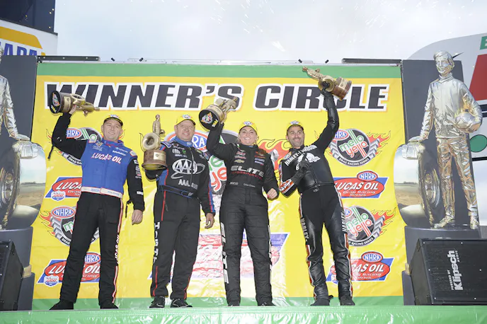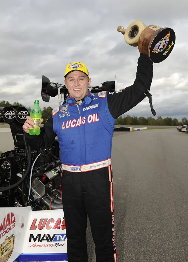 “Winning the Lucas Oil NHRA Nationals when you drive the Lucas Oil car is exactly what you want to do,” Crampton said. “I just wanted to do that so badly for [team owners] Forrest and Charlotte [Lucas]. There is nothing cooler than getting the Wally from Charlotte at the end of the racetrack.”