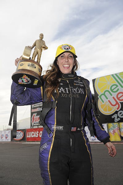 DeJoria, in her third season at the controls of an 8,000-horsepower Funny Car for Kalitta Motorsports, becomes the fourth female to win an NHRA Funny Car race and the 14th female in history to win a Mello Yello Series race.