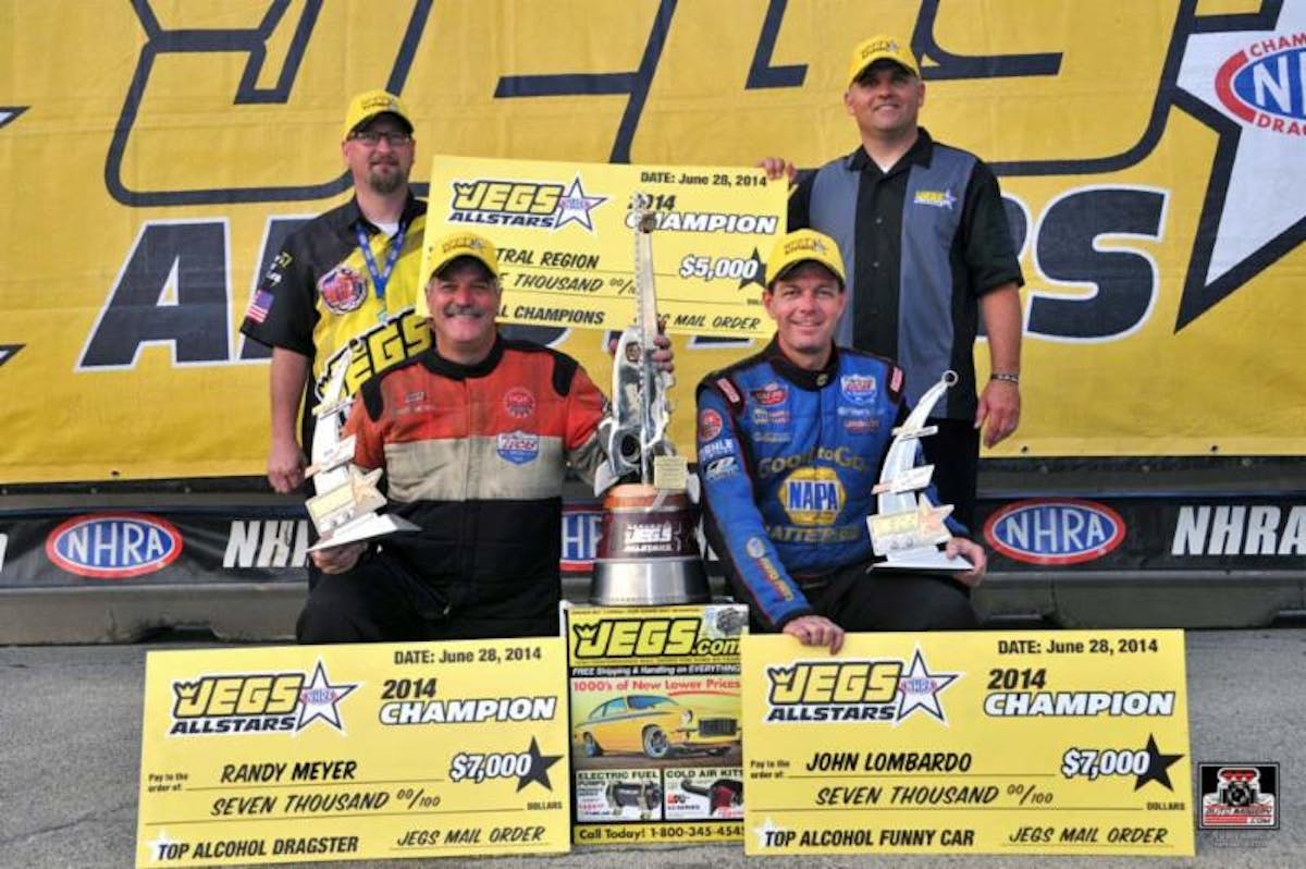 Randy Meyer, left, and John Lombardo scored in Top Alcohol Dragster and Top Alcohol Funny Car, respectively. Meyer’s win helped the Central Region earn the team title.