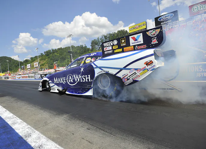 Reigning NHRA Top Fuel champion Shawn Langdon broke through for his first victory of the season Sunday at the Bristol Dragway, defeating a tire-smoking Doug Kalitta in the money round by a 3.90 to 4.12 count. Tommy Johnson Jr., winless on the NHRA trail since 2007, earned his eighth career win in Funny Car and his tenth overall by downing Tim Wilkerson in the final, and Erica Enders-Stevens scored her third win on the year in Pro Stock, running 6.69 in the final as opponent Jonathan Gray had troubles and slowed. Pete Farber and Steve Matusek both advanced to their first Pro Modified final of the season, with Farber taking the 6.08-second victory.