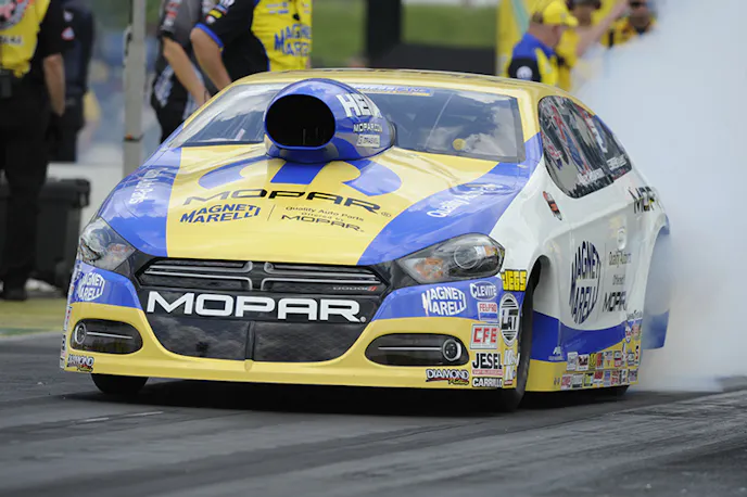 After coming up just short in her bid a week ago in Atlanta, Courtney Force earned the milestone 100th professional victory by a female competitor on Sunday in Funny Car at the NHRA Kansas Nationals at Heartland Park Topeka, defeating Cruz Pedregon of both ends of the race track, 4.14 to a 4.22. Spencer Massey earned his second win in as many weeks in Top Fuel, besting a tire-smoking Shawn Langdon in the final round, and in Pro Stock, Mopar teammates Allen Johnson and Jeg Coughlin squared off in the money round, with Johnson squeaking out a 6.663 to 6.664 win.