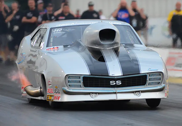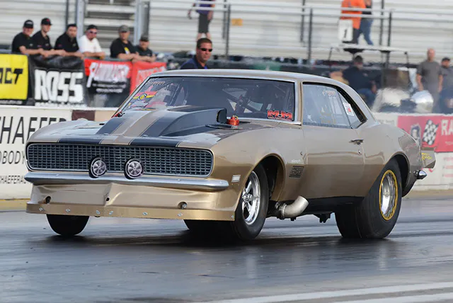Bob Rahaim wasn’t the quickest or the fastest car in the Pro Mod field at the NMCA Muscle Car Nationals in St. Louis, but he was arguably the most consistent, laying down a succession of 5.90 and 6.0-second runs in eliminations to charge into victory lane for the second time in as many races, running 5.95 in the final as opponent Jimmy Keen broke at the starting line and could only watch the Michigan native blast into the evening darkess. In Radial Wars, DeWayne Mills was virtually dominant on race day, recording an unofficial record speed of 202 MPH in the semis and a crushing 4.17 in the final to down local boy Mark Woodruff for his first NMCA win. In Street Outlaw, Dwayne Barbaree carried another six-second performance in qualifying into a win on Sunday, downing Phil Smith in the final, and Florida’s Eric Kenward reset the Xtreme Street national record on his way to a decisive 7.87-second win.