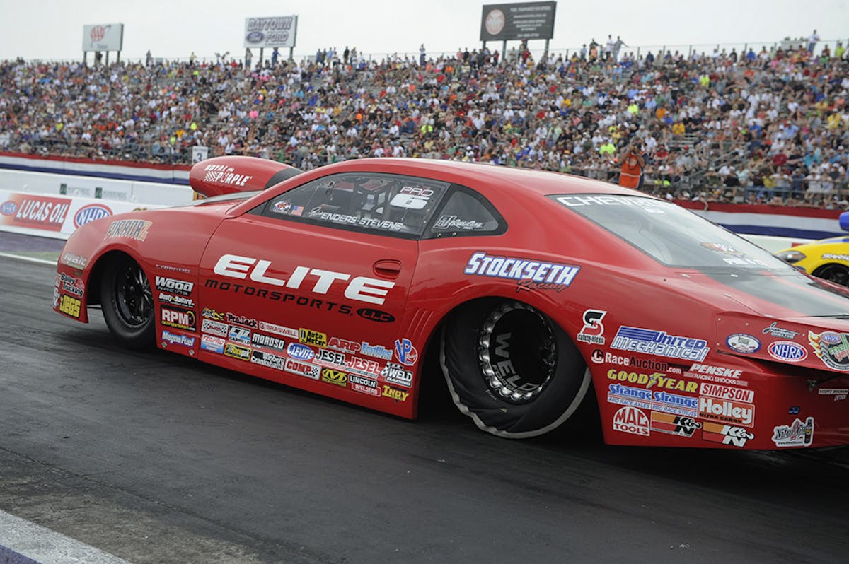 Enders-Stevens faced Allen Johnson in the Pro Stock final, winning on a holeshot with a 6.594-second pass at 210.60 mph. Johnson, the 2012 Pro Stock world champion, ran a 6.588 at 210.28. Even though Johnson ran the faster elapsed time, Enders-Stevens’ superior reaction time enabled her to keep her slim lead the whole race.