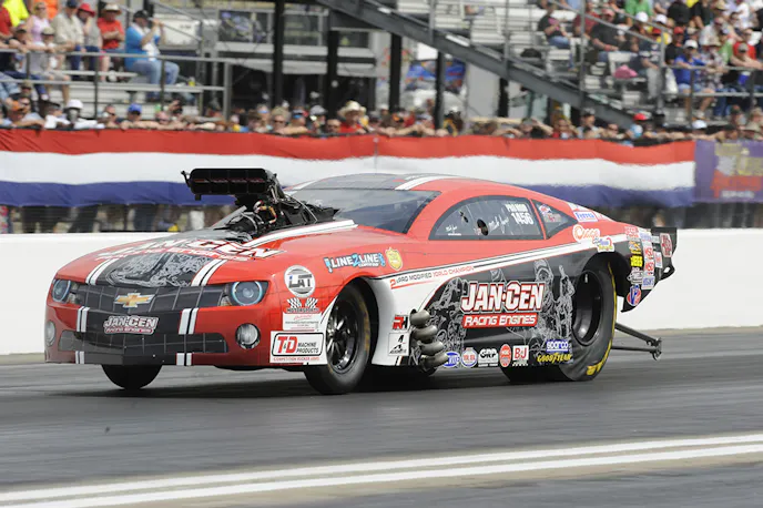 Janis’ Valvoline ’12 Camaro beat Castellana, the Gainesville winner, with a 5.927-second pass at 244.56 mph to take home the NHRA Pro Mod Drag Racing Series race in Houston, presented by J&A Service at this event victory. It was the Lancaster, N.Y., native’s third career victory in the doorslammer category and first at Royal Purple Raceway.