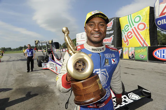 Antron Brown (Top Fuel), Erica Enders-Stevens (Pro Stock) and Andrew Hines (Pro Stock Motorcycle) also were winners of the NHRA Mello Yello Drag Racing Series event at Summit Motorsports Park near Cleveland.