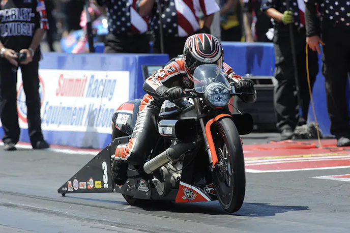 In Pro Stock Motorcycle, Hines claimed his third win of the season and fourth victory at Summit Racing Motorsports Park, riding his Screamin’ Eagle Vance & Hines Harley-Davidson to a performance of 6.901 at 193.96 in the final round against Hector Arana’s Lucas Oil Products Buell.