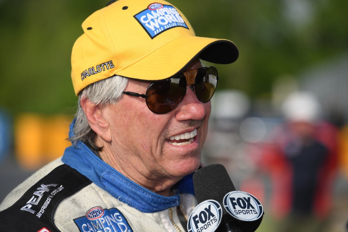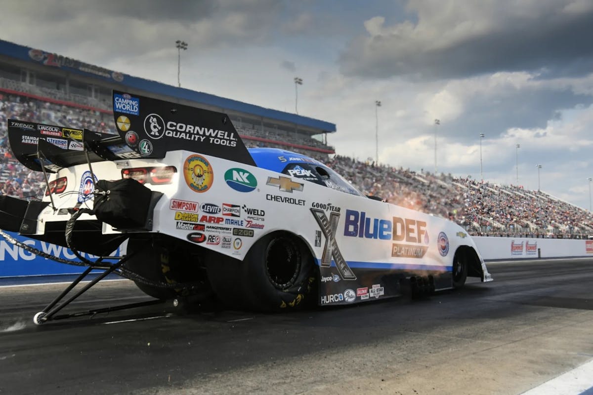Force qualified No. 1 with a track-record run of 3.850-seconds, set the track speed record with a blast of 335.07 mph in his 11,000-horsepower PEAK/BlueDEF Platinum Chevrolet Camaro SS during the first round of eliminations and then finished off the weekend with a run of 3.914 at 328.66 in the final round, knocking off Robert Hight, defending world champion Ron Capps and first-time finalist Mike McIntire Jr. Force, the 16-time Funny Car world champ, had the standout car all weekend, rolling to his second straight four-wide win in Charlotte and he also dedicated the win to his daughter, Adria, who is recovering from a medical issue.