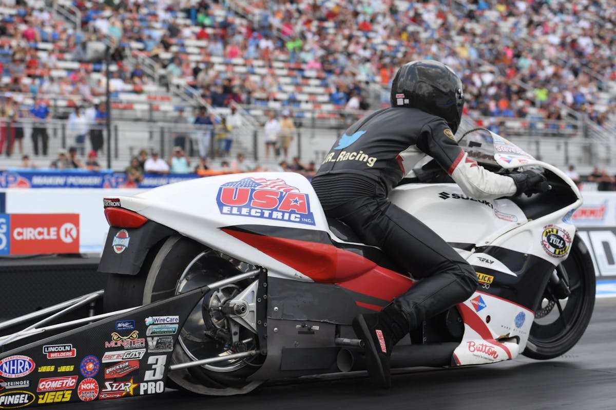 The Charlotte four-wide event continues to treat Johnson very well, as the Pro Stock Motorcycle veteran rode his way to a second straight win and a second consecutive victory at the Circle K NHRA Four-Wide Nationals. Johnson went 6.740 at 200.65 on his USA Electric Suzuki in the finals, easily distancing himself from Karen Stoffer, Eddie Krawiec and Joey Gladstone. It gives Johnson his 11th career victory and plenty of momentum after also winning last weekend in Houston. At zMAX Dragway, Johnson had the quickest bike of every session during eliminations, including an impressive run of 6.712 at 201.40 in the second round that set the track record. He also moved into the points lead with his second victory this season.