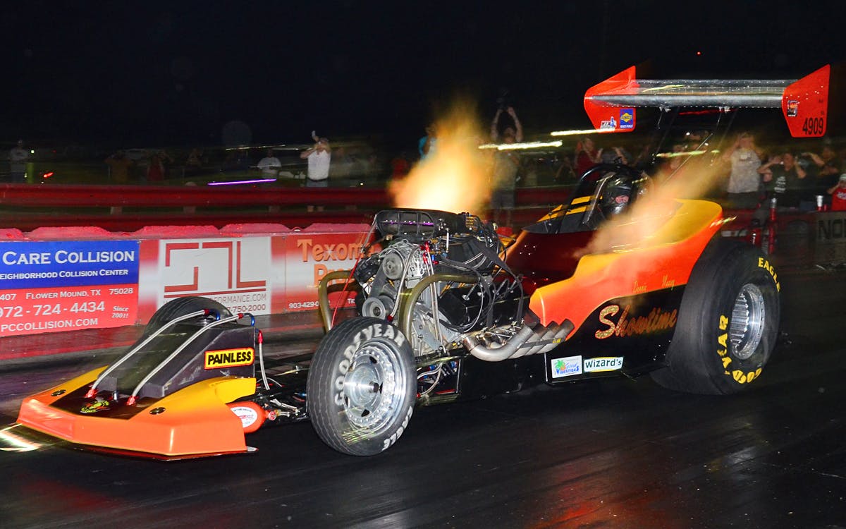 Also headlining the bill was a nitro funny car match race between the world famous “Blue Max” driven by Ronny Young against a new kid on the block, Greg Longoria driving the Gary Doak owned “Bucket List” nitro funny car. This match-up also included a special solo tribute pass by the “Blue Max” to Raymond Beadle who had just passed away after an illness in a Dallas hospital.