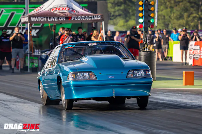 Connor McGee made a statement during the final round of qualifying with a blistering 4.467 at 160.29 mph. McGee’s run was the first half of a class elapsed time record, but he was unable to back it up. Despite falling short of the record, McGee advanced to yet another final, looking to go back-to-back. No. 2 qualifier Austin Vincent made his way through the field, posting the low elapsed time of each round. In a familiar final-round matchup, it was once again the two Mustangs of Vincent and McGee. Vincent went low elapsed time of eliminations and added another PDRA 660 win to his collection, running 4.517 at 167.01 mph to McGee’s 4.569 at 156.35 mph.