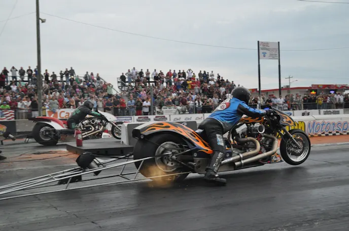 Jay Turner’s 228.31 mph lap in Nitro Harley got the crowd on its feet