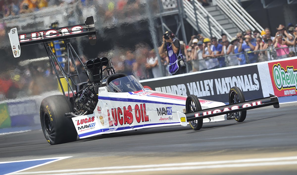Crampton, last season’s Automobile Club of Southern California Road to the Future Award winner, raced his Lucas Oil dragster to a 3.884 at 321.04 to take the win over three-time world champ Larry Dixon, whose C&J Energy Services dragster slowed to a 4.004 at 250.41. The win was Crampton’s first at Bristol, third of the season and fifth of his career. He is now 5-0 in finals and moves to third in points.
