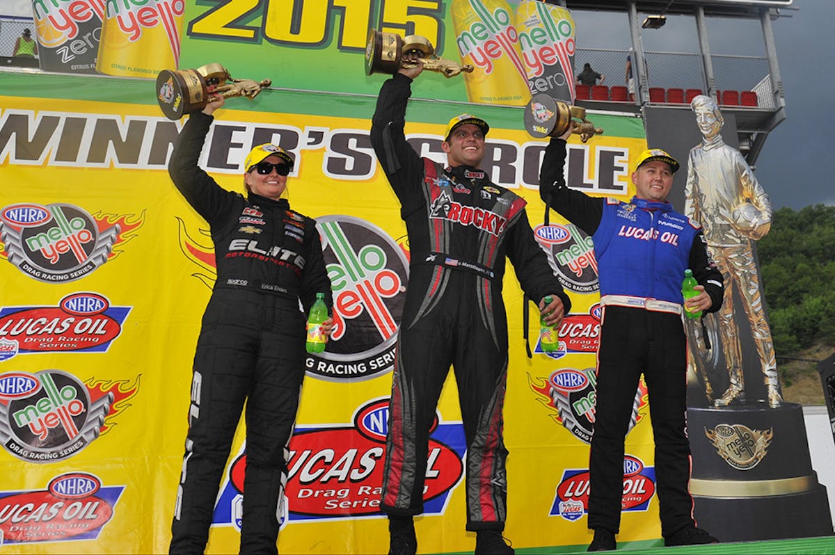 Richie Crampton (Top Fuel) and Erica Enders (Pro Stock) were also winners in their respective categories at the NHRA Mello Yello Drag Racing Series event at the historic dragstrip in northeast Tennessee.