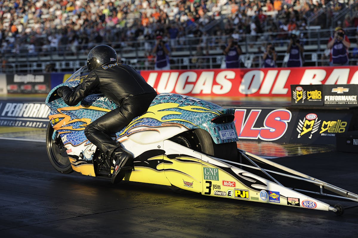In Pro Stock Motorcycle, Savoie rode his White Alligator Racing Suzuki to the top spot with a 6.848 at 195.28. Savoie, an alligator farmer from Louisiana, has five No. 1 qualifiers in his career. He won the Chevrolet Performance U.S. Nationals last year and posted runner-up finishes here in 2014 and 2011.