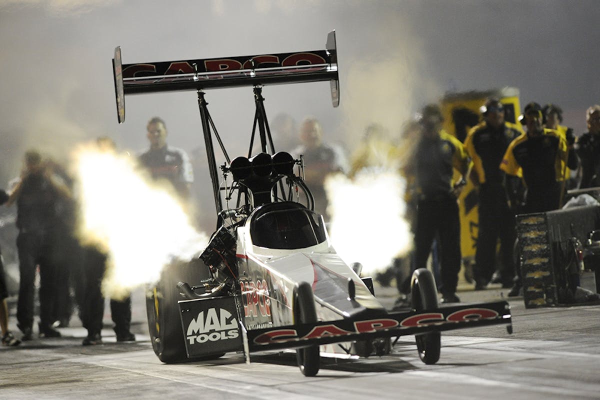 “We’re grateful for what we got,” said Hagan, a two-time Funny Car world champion. “It was a crazy run. The car washes out really hard and I’m over near the wall and I think, ‘Man, I should really click this thing off,’ but then it starts to come around and it settles back down in the groove. It was digging and running good. We got some more night runs tomorrow and I’m sure everyone is going to be pressing hard and we got a lot to do, but it was a wild run and it’ll be one that I’ll always remember.”