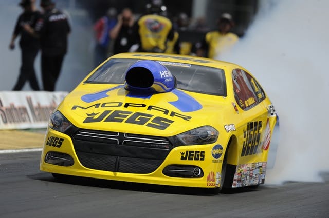 Jeg Coughlin powered his JEGS.com/Mopar Dodge Dart to his 57th career Pro Stock win with a 6.558 at 211.63, defeating rival Greg Anderson in the final. The win earned Coughlin, the five-time and reigning Pro Stock world champion, his third career victory at Atlanta and first of the season .
