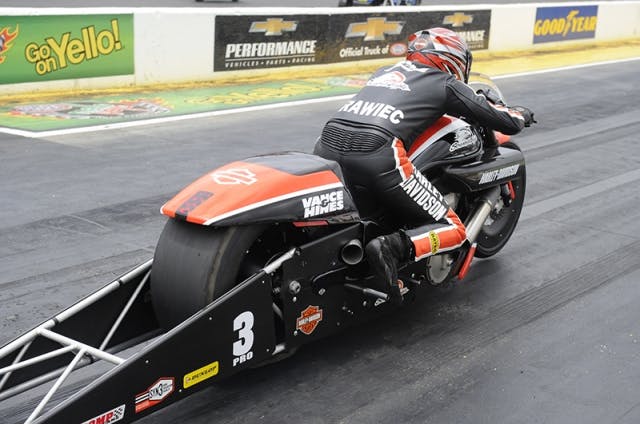 Krawiec was the dominant racer all weekend in Pro Stock Motorcycle, racing to victory as the No. 1 qualifier over teammate Andrew Hines with a final round performance of 6.806 at 197.45 on his Screamin’ Eagle Vance & Hines Harley Davidson. It was the first win of the season for Krawiec, a three-time Pro Stock Motorcycle world champion.