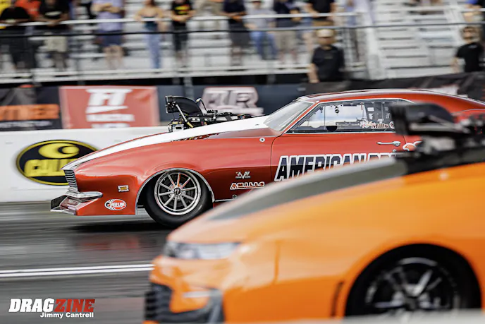 The Drag Illustrated Winter Series entered its second year by posting the quickest and tightest 32-car Pro Mod field ever for the Snowbird Outlaw Nationals. Jason Harris took the number one spot with a 3.560 at 211.20 mph in his newly wrapped, Harts Charger-powered ’69 Camaro, Party Time. Kyle Dvorak rounded out the massive 80-car field, sliding into the number 32 position with a 3.615 at 207.69 mph.