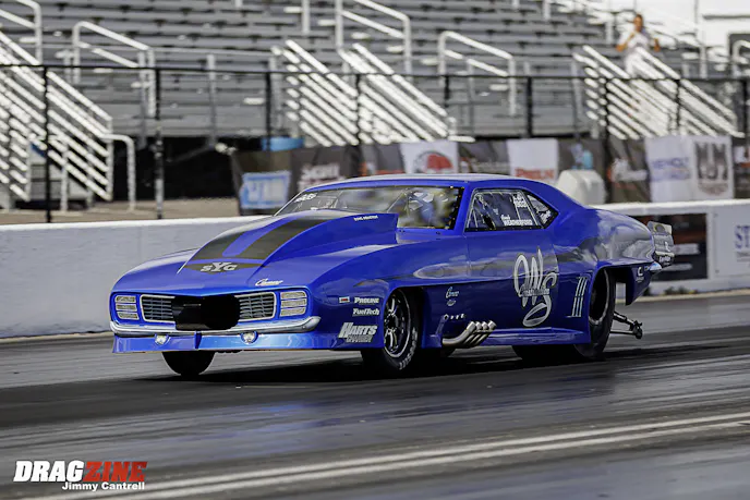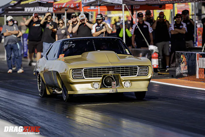 The Drag Illustrated Winter Series entered its second year by posting the quickest and tightest 32-car Pro Mod field ever for the Snowbird Outlaw Nationals. Jason Harris took the number one spot with a 3.560 at 211.20 mph in his newly wrapped, Harts Charger-powered ’69 Camaro, Party Time. Kyle Dvorak rounded out the massive 80-car field, sliding into the number 32 position with a 3.615 at 207.69 mph.