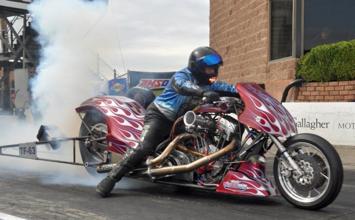 By far the most exciting battle of the weekend in the Nitro Jam Drag Racing Series took place in Nitro Harley, with four riders entering the event within reach of the championship. After a grueling weekend, Jay Turner Racing teammates Jay Turner, Randal Andras and Mike Scott were the only ones left standing and Turner’s victory over Andras in the final secured the championship for Scott, his first.