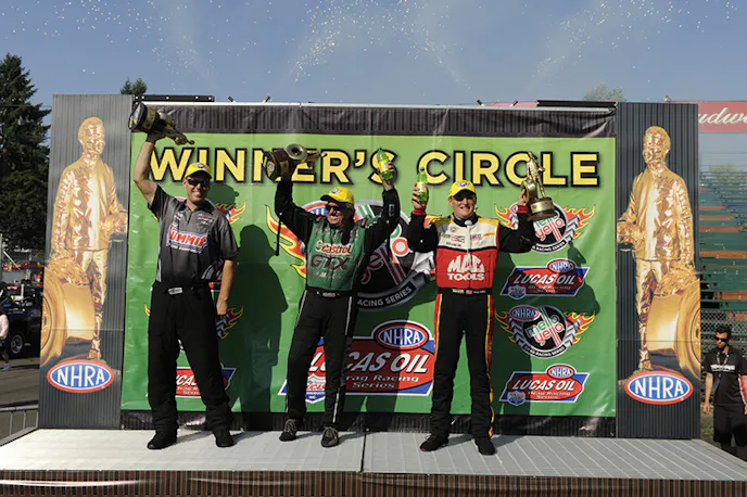 Doug Kalitta (Top Fuel) and Jason Line (Pro Stock) also were winners in their respective categories at the NHRA Mello Yello Drag Racing Series event near Seattle.