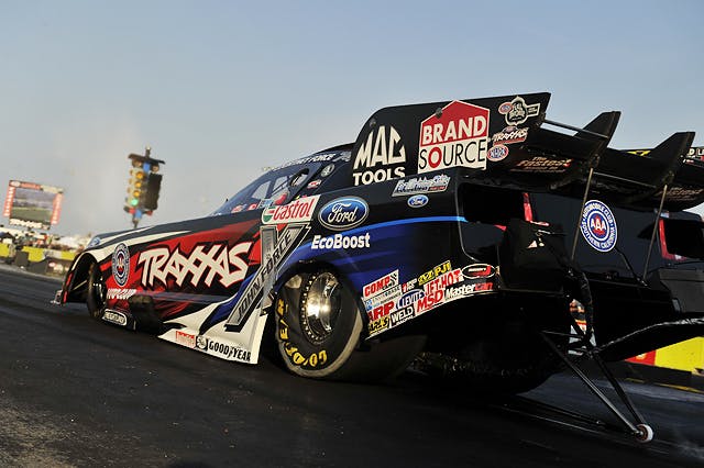 In Funny Car, the younger Force earned her second No. 1 qualifying position of the season, with her Friday performance of 4.081 at 308.21 in her Traxxas Ford Mustang. She will race fellow rookie driver Todd Lesenko in the first round.