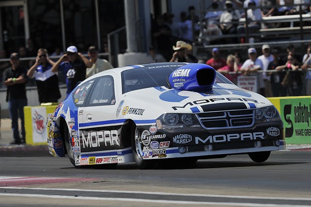 Johnson raced to a career-best 10th No. 1 qualifying position of the season in Pro Stock, powering his Team Mopar Dodge Avenger to a track record performance of 6.550 at 211.99. Johnson will meet Warren Johnson in the opening round.