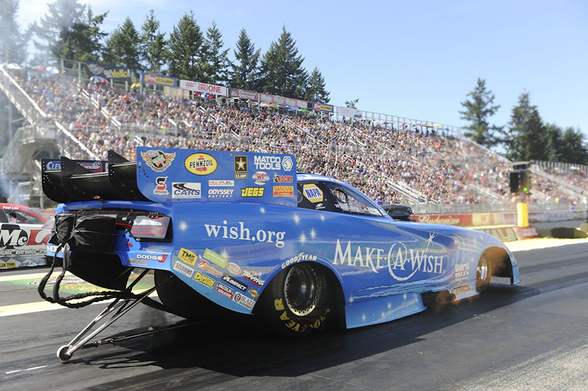 Johnson Jr. took out the 2012 world champ in the semifinals after red-hot Beckman’s record-setting machine, which was riding a two-race winning streak, dropped a cylinder at the hit of the throttle. Johnson Jr. moved on to the final where he recorded a performance of 4.073 seconds at 308.00 mph and used a holeshot victory to defeat Del Worsham. The win was Johnson Jr.’s second of the season and 12th of his career (10th in Funny Car). With the result, Johnson Jr. becomes the third driver to win an event in both Top Fuel and Funny Car at Pacific Raceways.