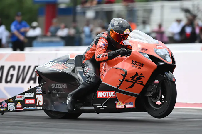 The two-time world champion captured his first win of the 2026 season with a 6.758-second run at 199.88 mph aboard his RevZilla/Motul/Vance & Hines Suzuki. Herrera outdueled a competitive final quad that included teammate Richard Gadson, Clayton Howey, and Chase Van Sant.