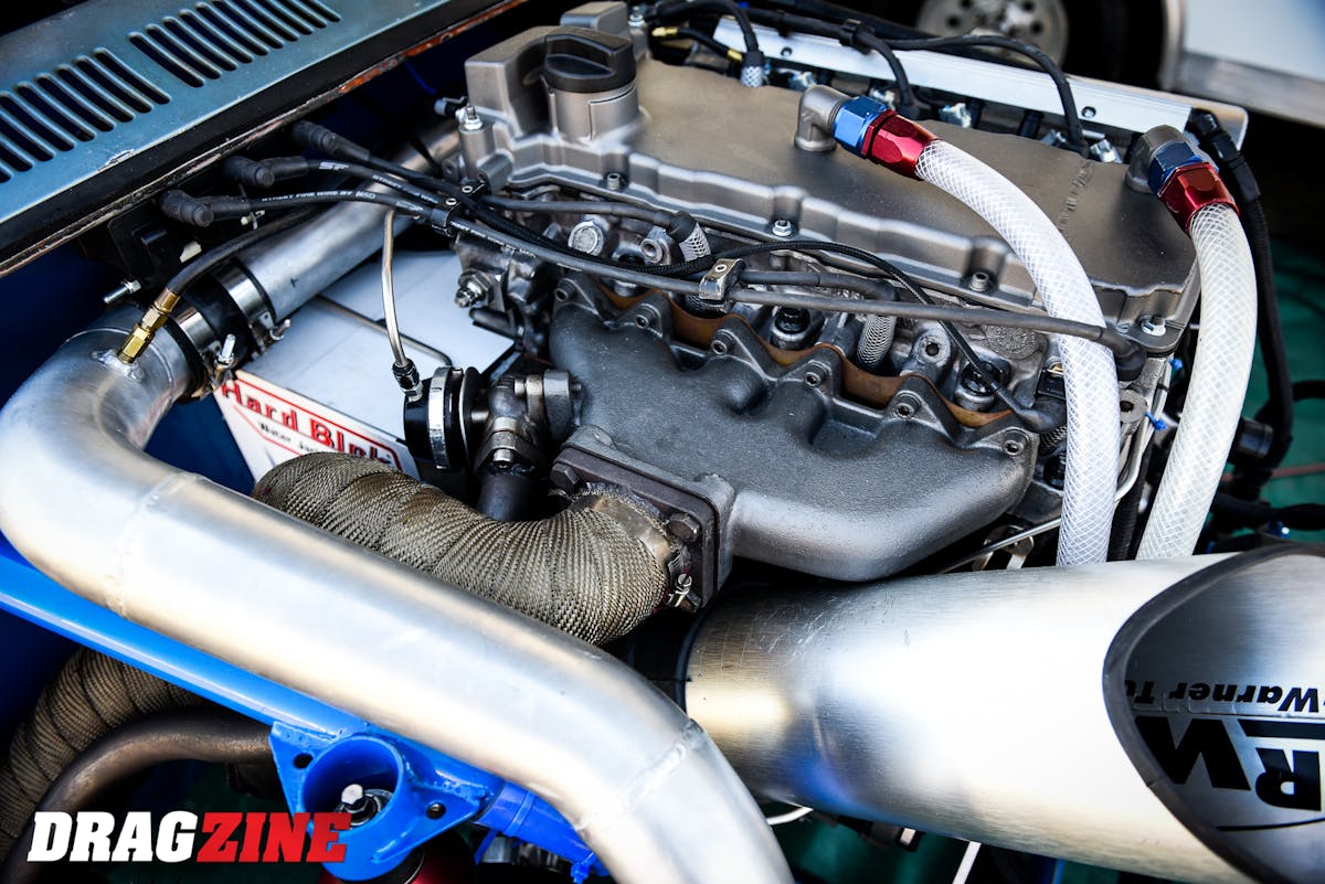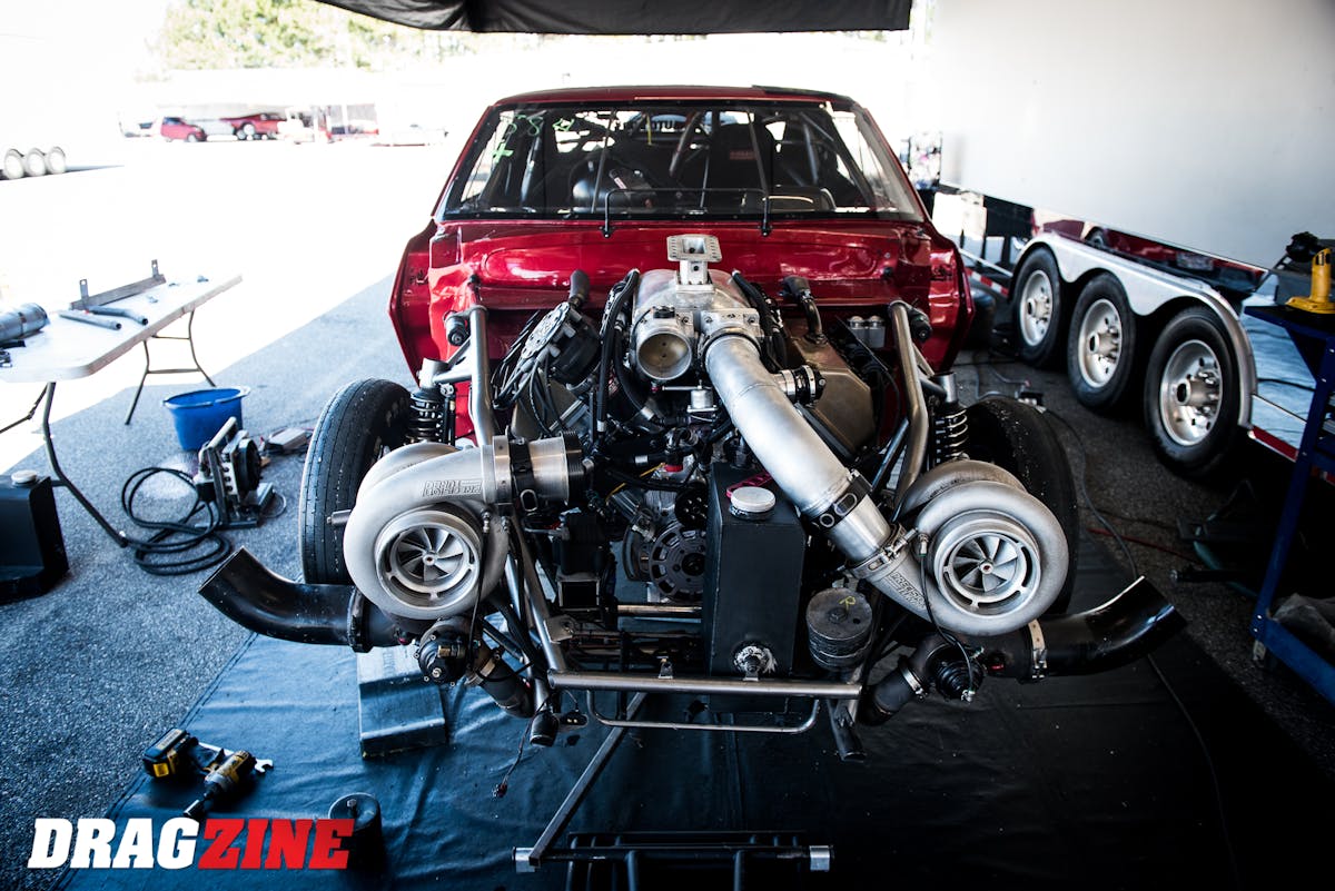 Steinke covered the 1/4-mile in a best of 7.99-seconds with the 88mm configuration and routinely competed in 8.50 index events in the Northeast. The car has also completed three Drag Week’s, and is one of the only cars in competition here this week that could be driven the interstate to Valdosta for dinner and not break a sweat. Steinke fired the car for the first time last Saturday night at 11 p.m. for the haul down to Georgia. To make weight, some 400-pounds had to be hung all over the car to get it to the hefty 4,005-pounds it sits at. Steinke clocked a 5.32 at 122 mph best so far this weekend.