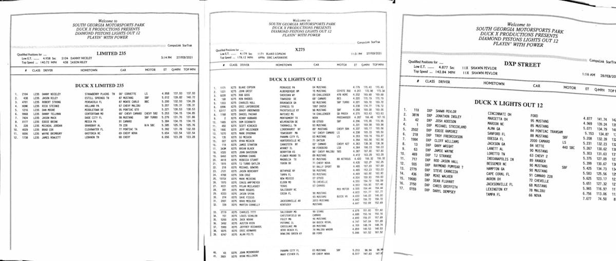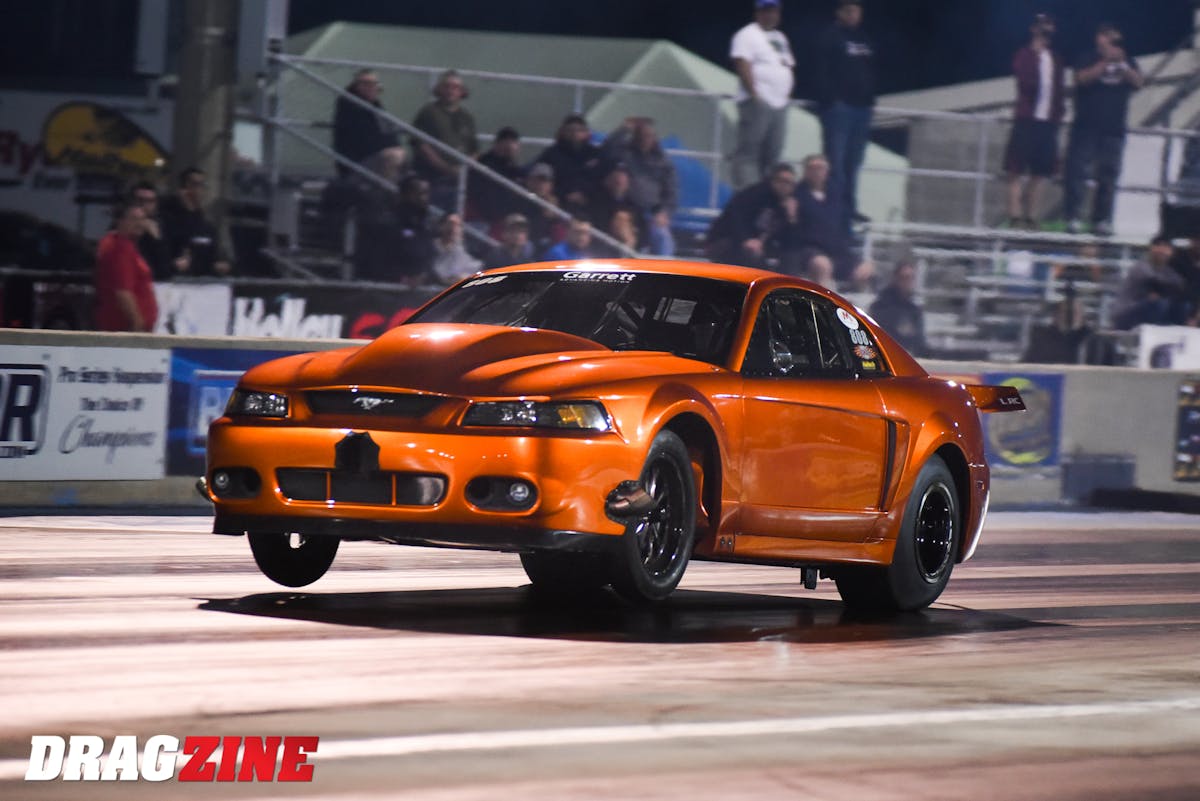 Manny Buginga and company have enjoyed a banner weekend thus far — Buginga has put together a string of mid- to low-3.70s in Pro 275 qualifying, including a world record and career best 3.704 on Friday evening. Buginga leads there strongest field of Pro 275 entries in history, with Jeff Miller, Eric Dillard, and Shawn Ayers all hot on his heels with 3.71-second laps to their credit. Jason Borum is anchoring the 32-car field wit his 4.35, and it takes a 3.893 to break into the top half of the show. Buginga’s team driver, Blake Copson, meanwhile, uncorked a 4.17 — the only pass in the teens thus far — in Wednesday evening’s opening session of X275 qualifying and has held strong over a field of 41 entries. The 32-car bumps spot in X275 stands at 4.647 with the fifth and final session to be run on Saturday morning. John Urist, in his Ford Coyote-powered Mustang, has impressed with a second-best 4.20, and heavy hitters Rob Goss, Ron Rhodes, and Charles Hull round out the top five.