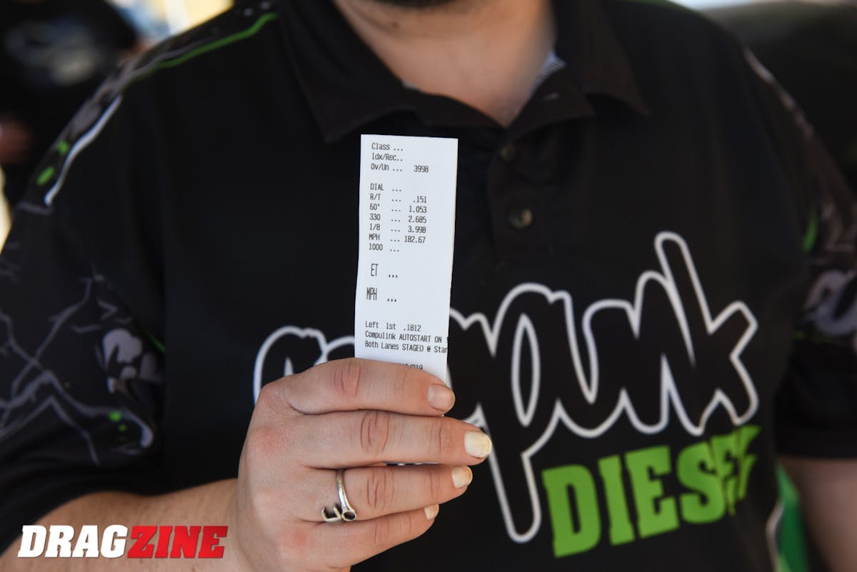 “This means everything,” Lavon Miller says, with a grin as wide as the state of Georgia on his face. “To be the first diesel vehicle into the threes is something that makes history. You can go 4.04 and people will forget about you in a year, but to be the first to go threes lasts forever. This was a personal goal of ours and we chased it and to actually get there after a year and a half of trying is just amazing. It’s such a reward to see the team effort and everyone come together and chip off the times. It’s just amazing.”