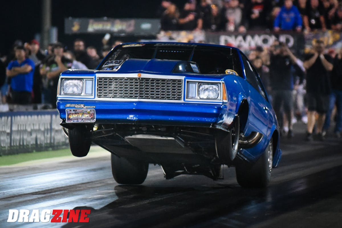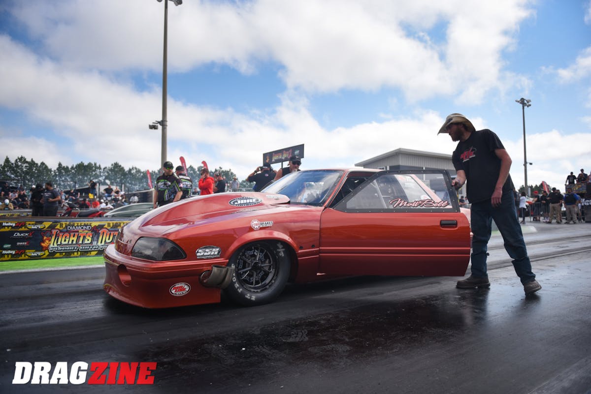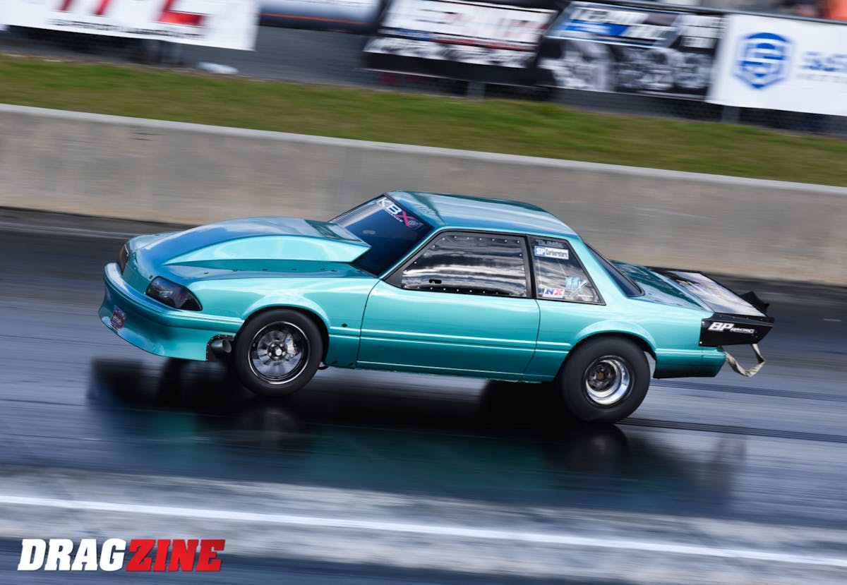Shawn Pevlor is invoking pain on the DXP Street field in his KBX-powered Fox-body; he clicked off a 4.89 in pre-race testing and repeated in early qualifying with another .89. Then, on Friday night the Ohio native lowered his own national record with a crushing 4.878 to pace the field into eliminations on