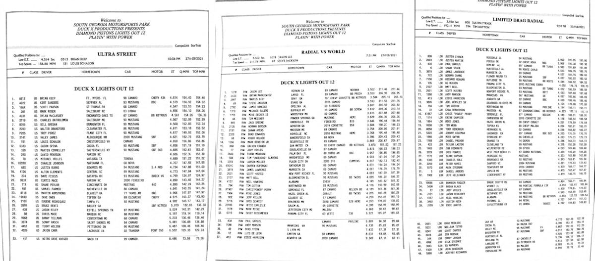 Rylan McLaskey won his second DuckX race in a row in Ultra Street, backing up his victory at No Mercy 11 last fall with a defeat of Bill Gregan Sunday afternoon, his .044 light and 4.585 motoring away from the slowing Gregan.