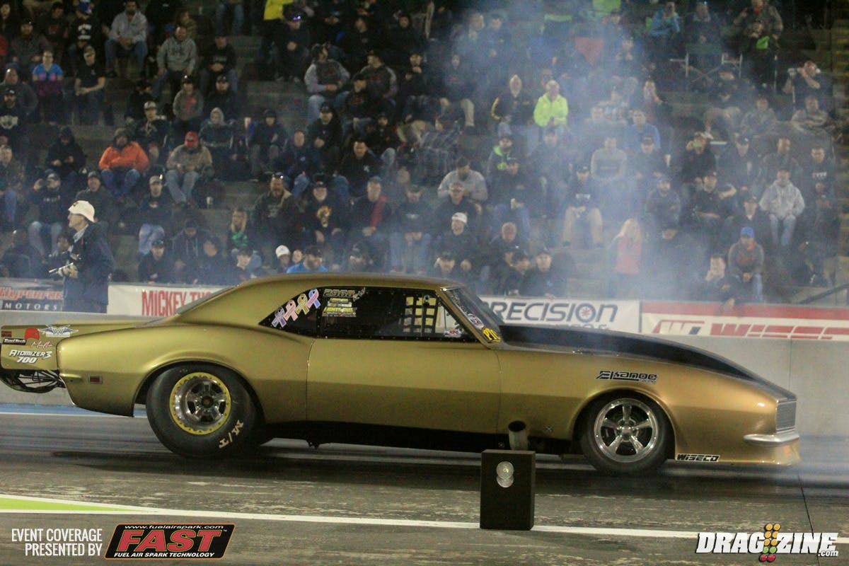 Jamie Stanton put his Camaro in third behind Dean Marinis with a 4.421 at 159.99 career best run. Over the winter he and pentagon Racecraft's Jake Holdrige  swapped to dry sump oiling and made some other changes over the winter freeing up some more horsepower for this season. They are pleased so far after just two hits. They will looking for a .39 tomorrow night.
