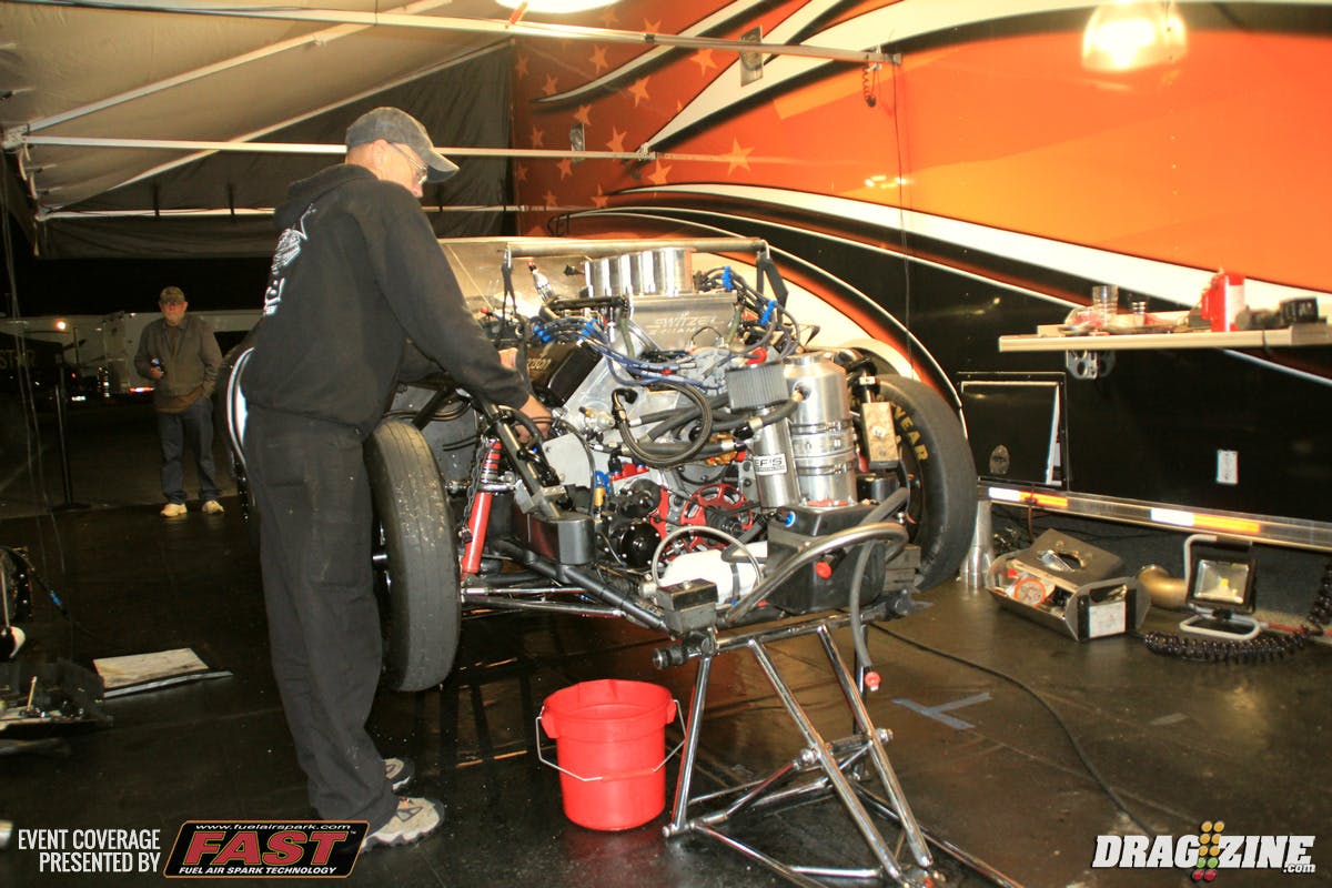 David Pearson made the switch to alcohol in the off season taking the time to freshen everything up after The Orlando World Street nationals last year. They arrived with no testing and are making changed to the fuel cell this morning looking to avoid some potential cavitation which may have caused them some fueling problems yesterday.
