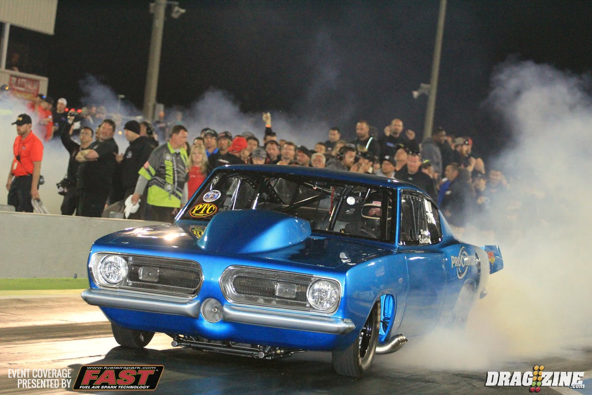 John McDonough hails from Panama City, Florida and is double entered in X275 and Leaf Spring where he qualified fourth with a 4.77. The Nova is owned by Chris Bryant and was built by Under Pressure Race Cars with power coming from Big Mac Racing Engines topped with an Induction Solutions fogger and backed by a Proformance Transmission and PTC converter. He will be looking for 4.60’s in the next session.