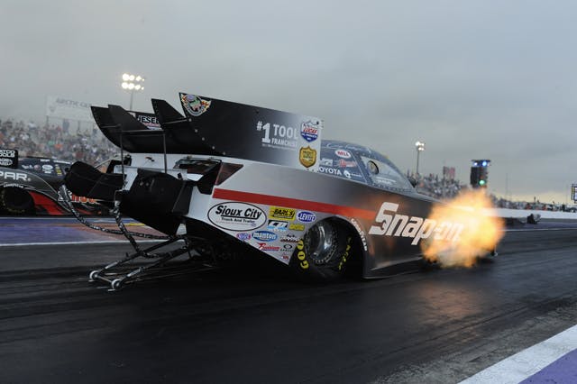 NO DSR – For the first time in 41 events, since the July 10, 2011 Joliet, Ill., race, Don Schumacher Racing had no cars in either the Top Fuel or Funny Car final.