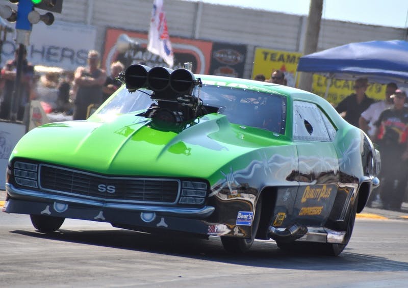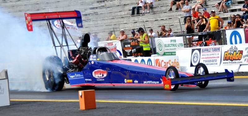 In sportsman competition Harrod, Ohio native Jacob Elrod returned to the track where he won three races in one day one year ago, once again claiming a win in Super Rod to give him four Sunday wins in four years at Grand Bend. Elrod drove his Corvette roadster to a win over Dave Klomps as Elrod ran one one thousandth off of the 9.90 dial while Klomps broke out by that same margin.In Top Sportsman Fred Sommer won via red light over Steve Corriveau while Bill Moloughney produced a very close win over Tony Positano in the Top Dragster final. In the Stock categories Franco Cantusci won over a red-lighting Robert Becker in Super Stock and Stephen McGrath continued his hot streak in Stock with a win over Doug Box.